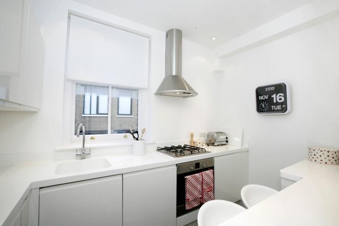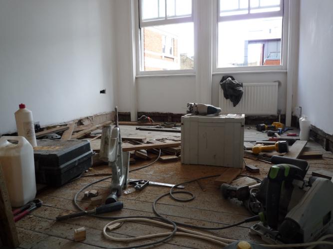 Complete refurbishment of mansion flat including changing layout of property, new heating system and re-plumbing, electrical works, installing a new kitchen and reconfiguring space to add an ensuite bathroom.